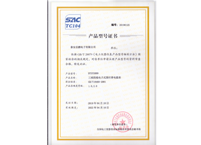 三相四線電子式預(yù)付費(fèi)電能表產(chǎn)品型號(hào)證書
